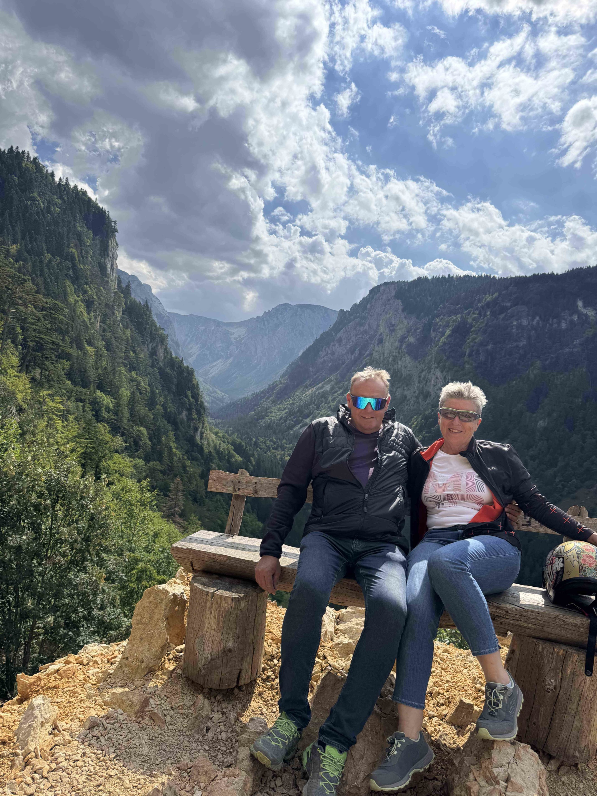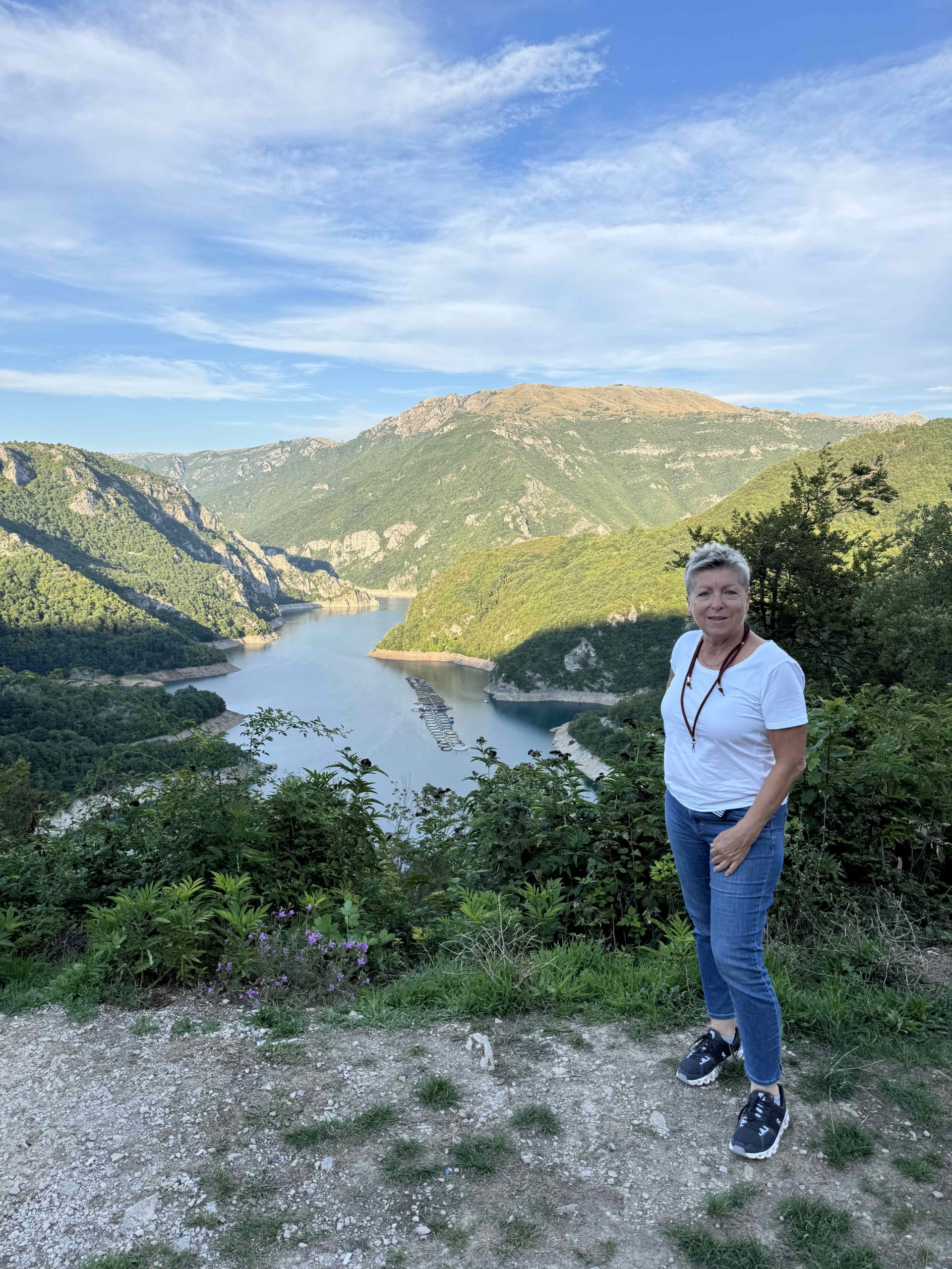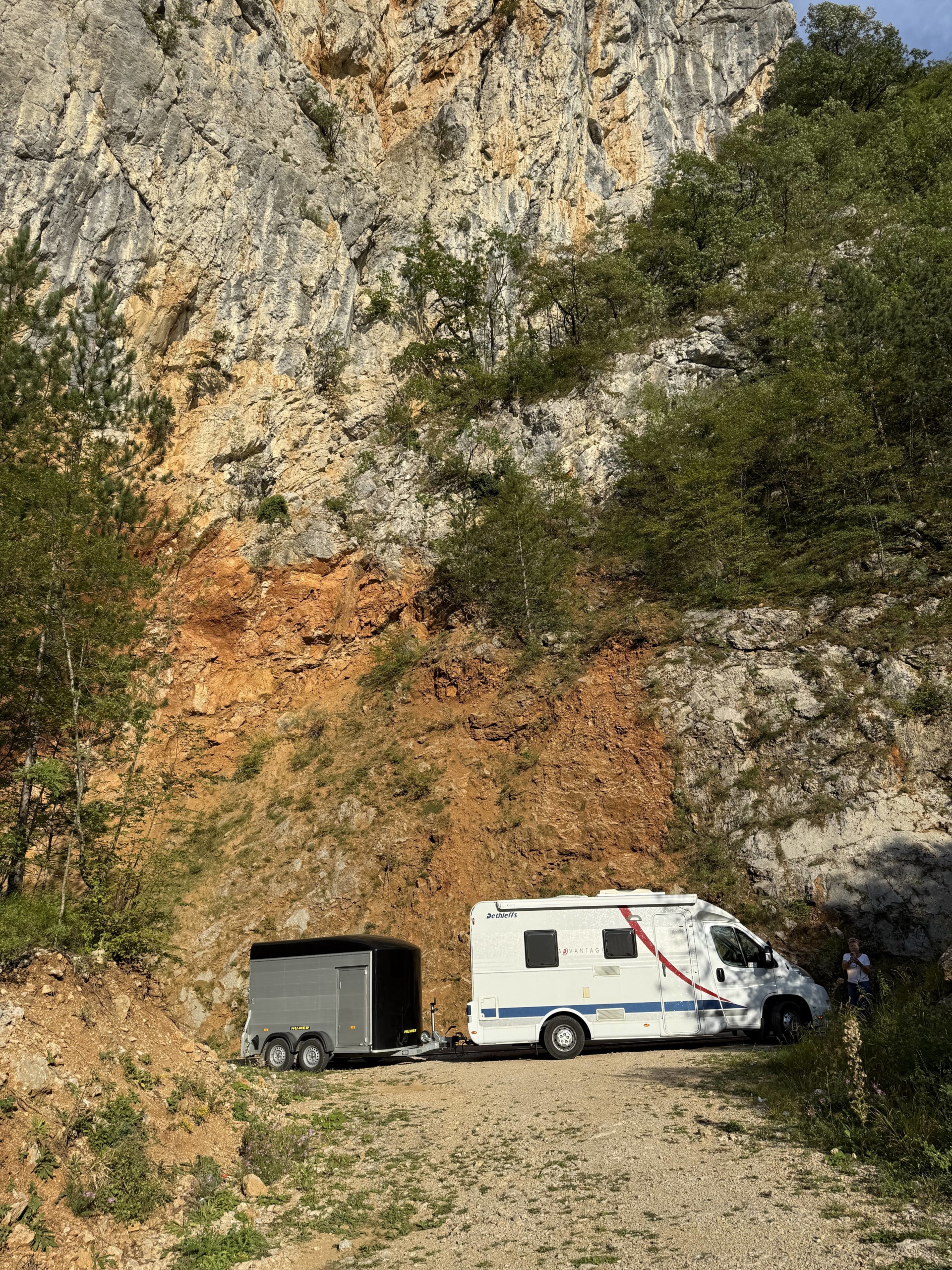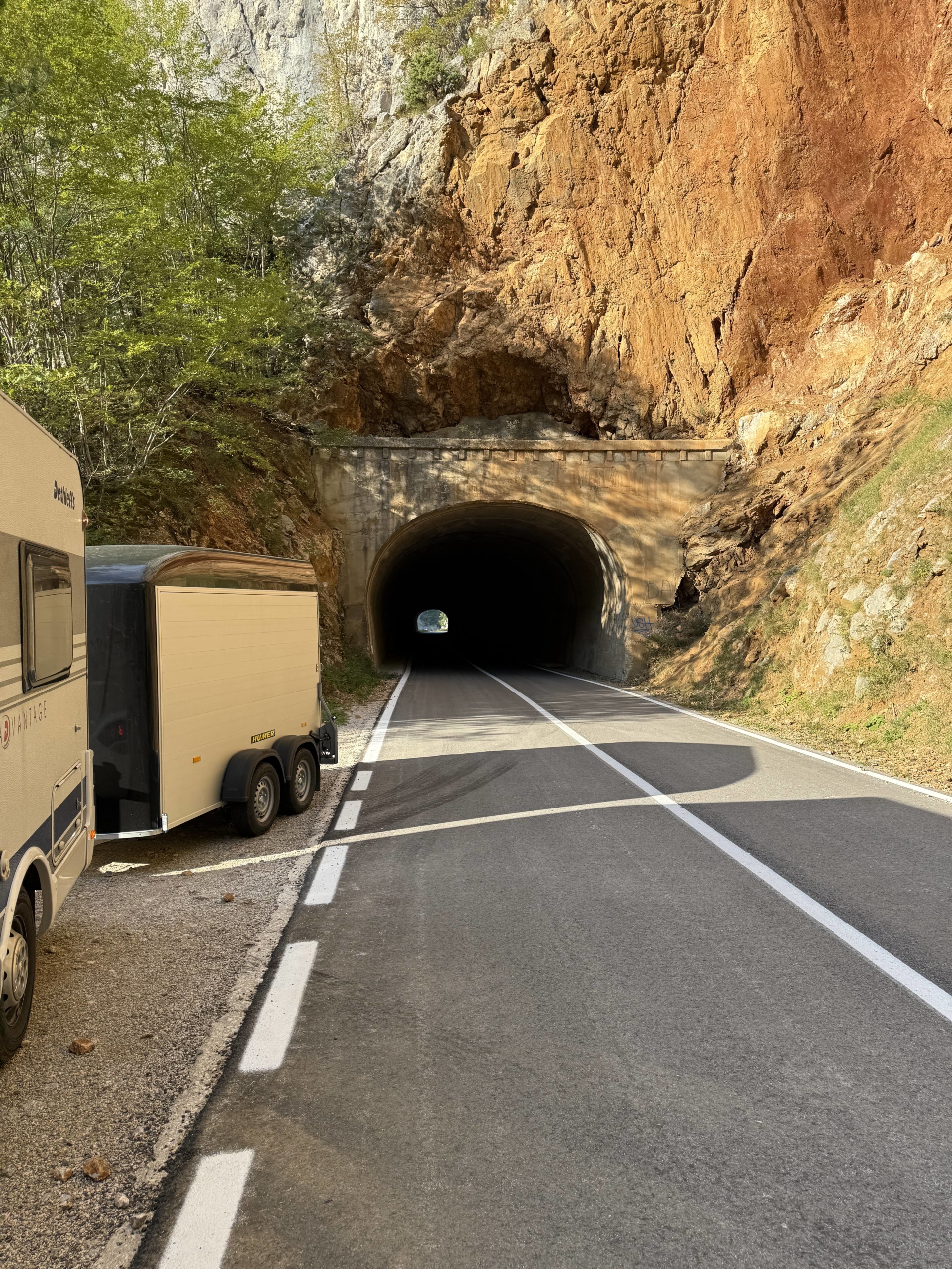 Vor der Abreise nach Montenegro luden wir das Quad aus dem Anhänger und machten noch einen kleinen Abstecher zur Sonnenpyramide und die Höhlen von Visoko. https://www.bosnische-pyramiden-reisen.com/das-tal-der-pyramiden/der-ravne-tunnel/ Der Gang durch die Höhlen war sehr Interessant durch einen Guid erklärt. Es ist sehr Sehenswert die Höhlen zu besuchen. Der Große Stein, das spürt man ist Elektromagnetisch aufgeladen und diese Kraft überträgt sich wie eine Spannung in den Körper. (wers halt spürt, Brigitte hat das das nicht gespürt, …) Zurück am Cämpingplatz das Quad wieder verladen machten wir uns auf den Weg nach Zabljak (Montenegro) in den Dumitor Nationalpark. Die Anfahrt nach Zabljak war eine Spannende Aktion mit unserem Wohnmobil und Anhänger. An der Grenze zu Montenegro angekommen mussten wir eine schmale Brücke überqueren, (Platz eine Autobreite) von der Gegenseite die Brücke voll mit Autos. Brigitte musste als Strassenscherif am anderen Ende der Brücke den Verkehr regeln, half aber trotzdem nichts, so wurde die Grenze kurzfristig geschlossen und die Zollbeamtin stoppte den Gegenverkehr. Nach ca. 1. Stunde konnten wir die Brücke überqueren und tauchten in ein Landschaftliches Erlebnis ein. An unzähligen Tunnels und einen riesengroßen Stausee vorbei führte uns die Straße nach Zabljak. Um ca. 19:00 auf dem Campingplatz ( https://autocampmlinskipotok.com/de/ ) angekommen richteten wir uns für ein paar Tage ein.